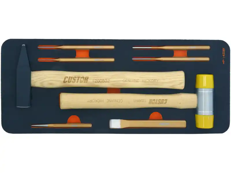 Part No. Contents Length (mm) 1200801 soft-face hammer 35 mm 300 1200802 engineer hammer 27 mm 320 1401502 center punch 4 mm 130 1401501 flat chisel 18 mm 150 1401503 pin punch 2 mm 150 1401504 pin punch 3 mm 150 1401505 pin punch 4 mm 150 1401506 pin punch 5 mm 150