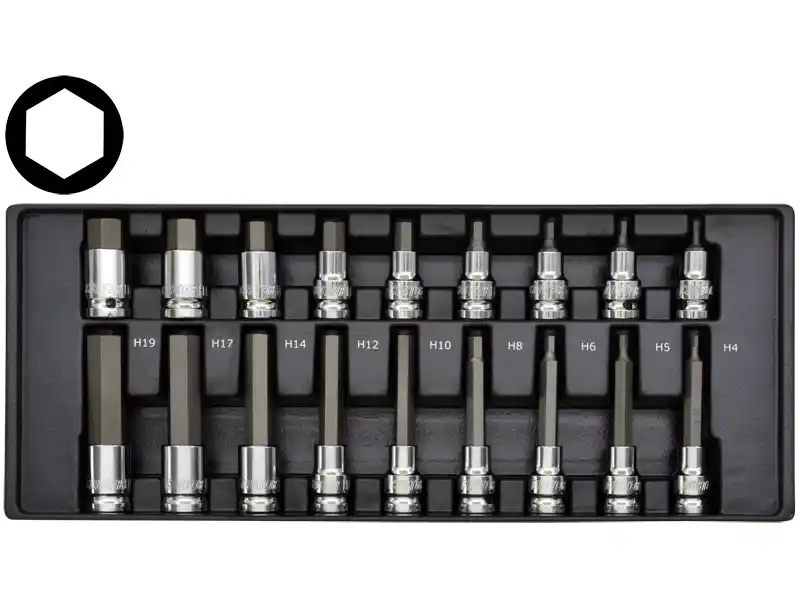 18PCS - 1/2" DR. HEX SOCKET BIT SET