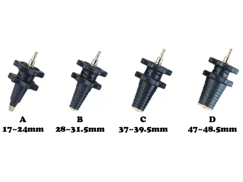 * adaptor size: 17 ~ 24 mm, 28 ~ 31.5 mm, 37 ~ 39 mm, 47 ~ 48.5 mm