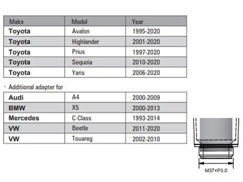 - without adaptor for Toyota: