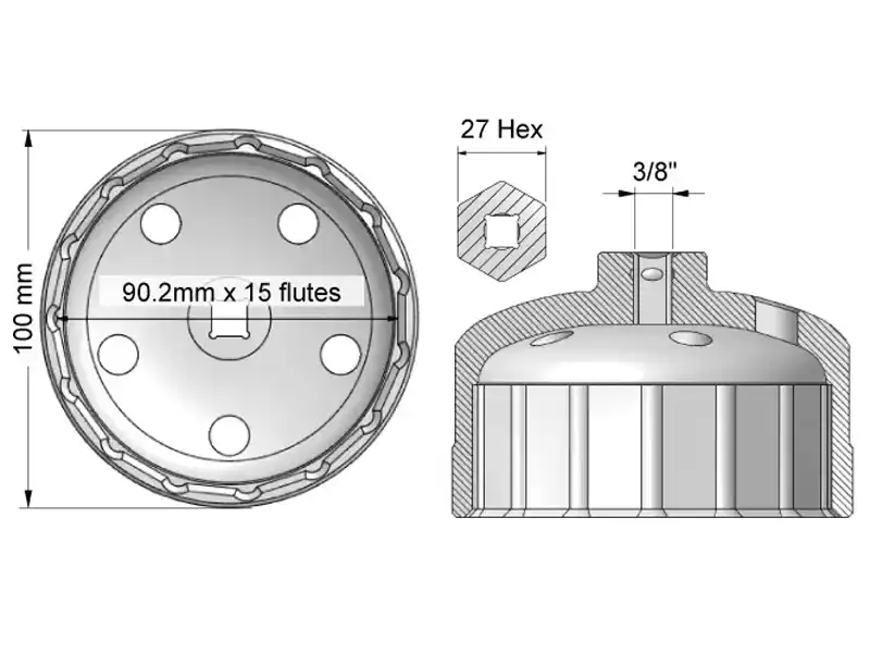 * 15 flutes x 90.2 mm x 3/8" dr x 66 mm (h)