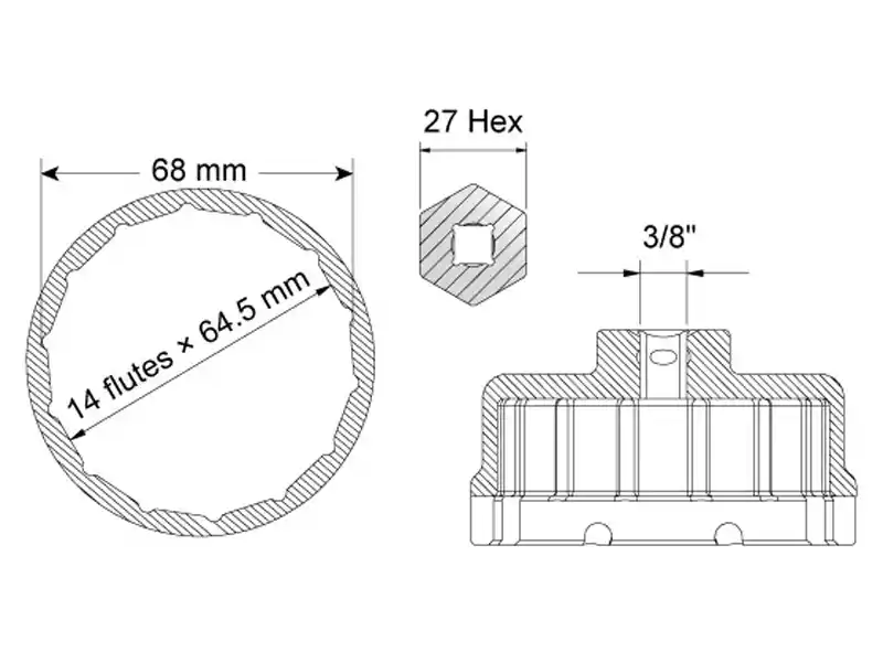 * 14 flutes x 64.5 mm x 3/8" dr x 49 mm (h)