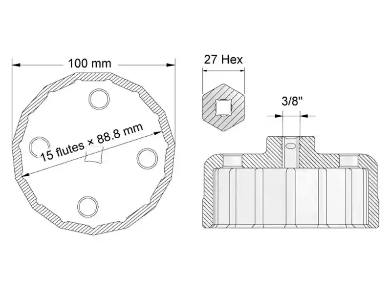 * 15 flutes x 88.8 mm x 3/8" dr x 51 mm (h)