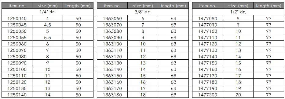 6‑Kant Tiefsteckschlüssel (1/4" ~ 1/2" Antrieb)