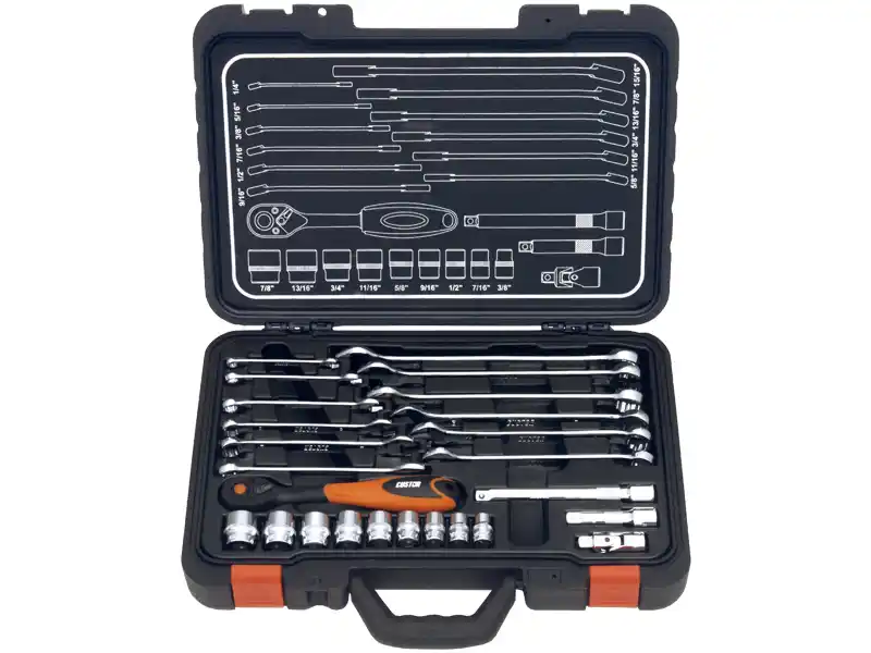 Egal, ob Sie auf der Baustelle, in einer Garage oder in einer Werkstatt arbeiten, unsere Werkzeugsätze bieten die notwendigen Werkzeuge und Geräte, um die Arbeit zu erledigen.