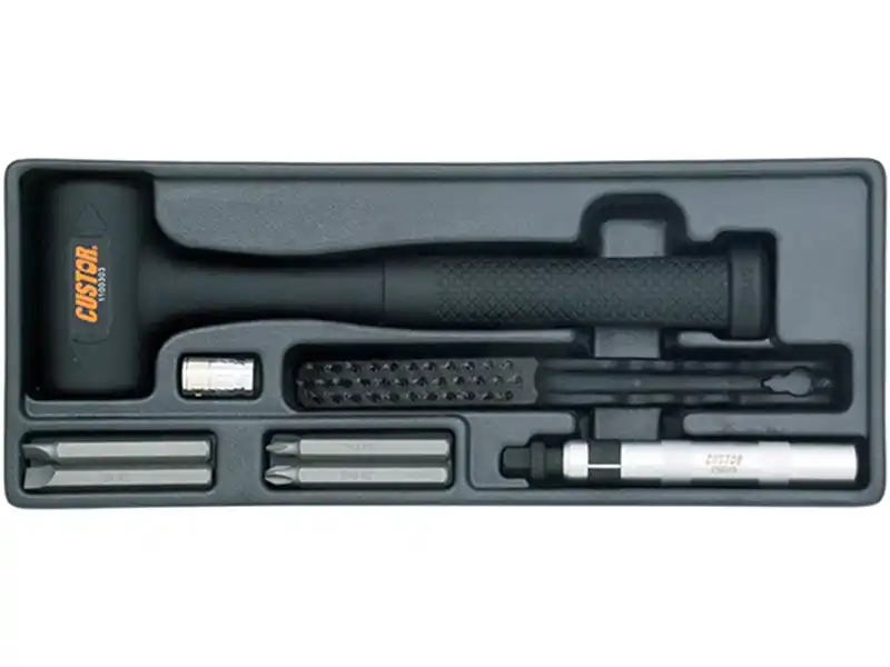 * impact driver: loosens rusted or frozen screws instantly; fits any 3/8" impact socket with a non-slip handle.