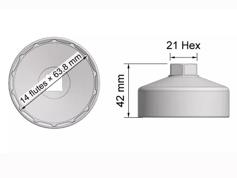• 63.8 mm × 14 flutes × 42 mm (height)