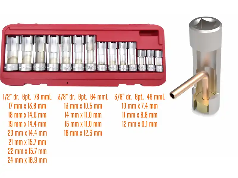* slotted sockets in 1/2" dr.: 17, 18, 19, 20, 21, 22, 24 mm x 6pt x 78 mmL "