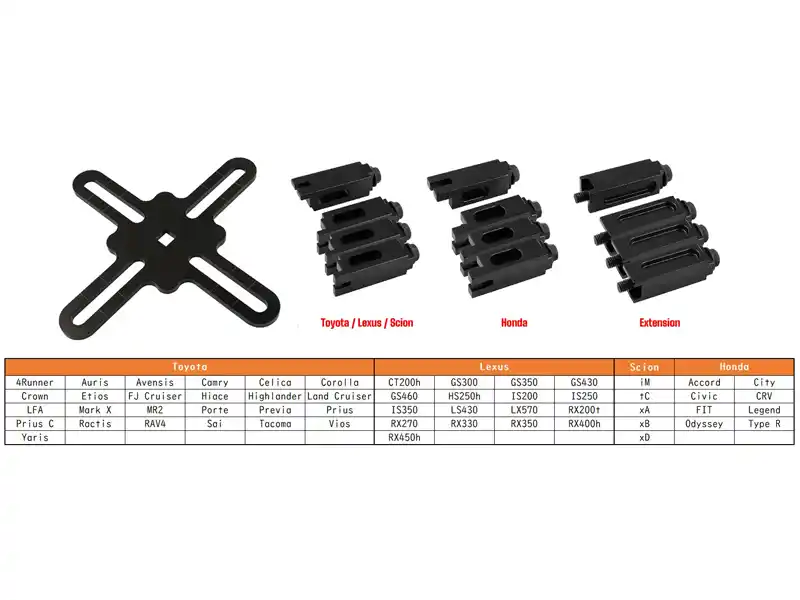 * Toyota: 4runner / Auris / Avensis / Camry / Celica / Corolla / Crown / Etios / FJ / Cruiser / Hiace / Highlander/ Land Cruiser / Lfa / Mark x / Mr2 / Porte / Previa / Prius / Prius C / Ractis / Rav4 / Sai / Tacoma / Vios / Yaris